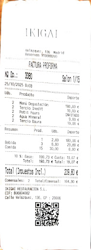 Read moreAyer día 22/04/23 fuimos a cenar y la experiencia un tanto surrealista. Al entrar fuimos bien recibidos por una chica que nos condujo a una mesa amplia y cómoda. Yo llegué hambriento pero mi pareja no tanto y además no come carne, de modo que preguntamos al camarero si era posible pedir un menu para mi y un surtido de nigiris para ella. “Todo es posible” respondió. Y en ese momento comenzó el surrealismo. El Maitre se acercó a nuestra mesa y al pedir el menú y los nigiris nos dice que no que no es posible. Le comentamos las restricciones alimentarias de mi pareja y nos indicó que el único plato del menú era un bocado de tartar que podíamos cambiar por un rollito, de modo que elegimos dos menús. Pedimos un par de cervezas y un vino y, mientras esperábamos, nos trajeron el aperitivo: de… albondigas rebozadas con panko (es decir carne). Nos hizo gracia por haber sido justo después de haberle comentado lo de la carne al maitre. Luego empezó el menú y en el segundo bocado nos traen croqueta envuelta en cecina o papada ibérica (carne de nuevo).Tampoco le dimos importancia. Por fin llegó el momento del tartar y el rollito que habían cambiado y resultó ser de… rabo de toro!! Jajaja Aquí ya explotamos en una carcajada y decidimos comentárselo al maitre porque no tenia sentido después de la conversación que habíamos mantenido antes de pedir. Nos pidió disculpas muy educadamente y seguimos comiendo entre risas y perplejidad. Un par de platos después, regresa el maitre con un obsequio por el error cometido: un dorayaki especial, relleno de… foie!! Jajajaja Llegados a este punto ya no entendíamos que estaba pasando así que entre risas le explicamos al maitre que cuando indicamos que mi pareja no comía carne nos referíamos a todo tipo de carne (vacuna, porcina, ovina y de pato). Volvió a disculparse muy educadamente y al final nos obsequiaron con unos postres adicionales. La verdad es que estaba todo delicioso y lo pasamos bien, pero fue una experiencia un surrealista y un restaurante de estrella Michellin no puede permitirse...