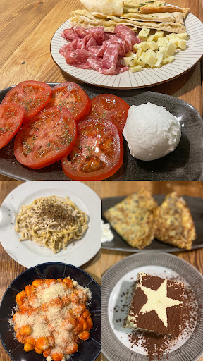 We came here to try out their menu del dia since we buy fresh pasta and sauces at their shop next door. All the employees were very friendly and welcoming. We reserved but it didn’t seem necessary as there weren’t that many people there. I had read reviews mentioning very interesting sounding items on the menu del dia, but at least on the day we went the options seemed pretty boring. For starters we went for the cheese and zucchini torte, which was pretty good although way too salty and the cheese flavor was very mild. For main course we went for the gnocchi with spinach pesto, this had absolutely no flavor and the gnocchi were overcooked, so they had the texture of dried out mashed potatoes. For dessert we had the pannacotta, which just tasted like milk fat that coated your mouth but had no other flavor. I would recommend the food at their shop next door over their restaurant as they have more interesting and flavorful options such as truffle or pumpkin ravioli and gorgonzola...