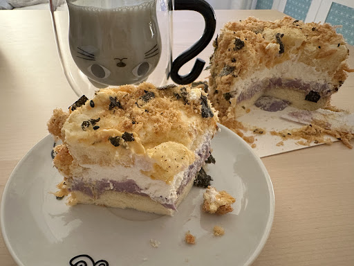 Read moreLugar interesante para probar pastelería china. Bien ubicado, ambiente muy agradable donde poder degustar sus bebidas y sus dulces. Si tienes la app Wechat y te metes en su perfil, actualizan diariamente el stock que tienen en el local e incluyen imágenes. El chino no es mi fuerte, pero la app tiene la opción de traducir. 👍 He de comentar, que yo he comprado una mini tarta, que es una tarta entre salada y dulce. (Rara para los gustos occidentales). Es bizcocho dulce, con taro y mayonesa suave, cubierto con hilos de carne seca, alga y sésamo. Riquísima 🤤 Es para valientes que les guste...