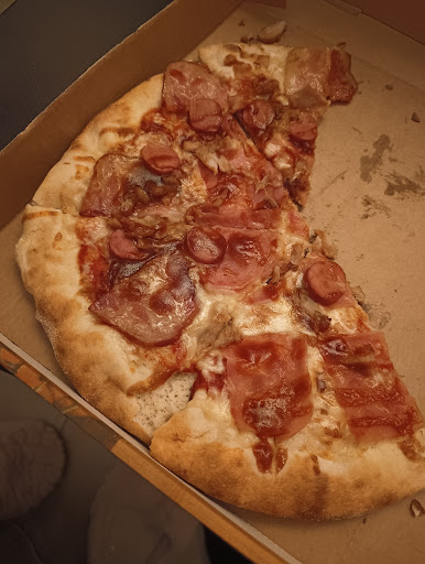 Read moreHe pedido una pizza a domicilio y la entrega ha sido rápida. La pizza aun siendo de tamaño Mediano era grande y muy generosa, estaba a rebosar de ingredientes, las familiares tienen que ser una locura. La masa crujiente y perfecta, ni muy gorda ni muy fina. Y el sabor del conjunto espectacular, la pizza en cuestión era la Vegetal y era una señora pizza, cargadísima de ingredientes, increíble que solo costara 7€. Además he pedido unas patatas fritas que estaban muy bien fritas y de tamaño también eran bastabte generosas. Por poco más de 9€ he comido hasta rebentar, no iva ni por la mitad de la pizza y ya me estaban entrando los sudores de ver lo que me quedaba todavía, las pizzas medianas llenan bastante y perfectamente pueden compartirse entre 2. Además el envío ha sido gratis. La repartidora muy maja y atenta. Super...