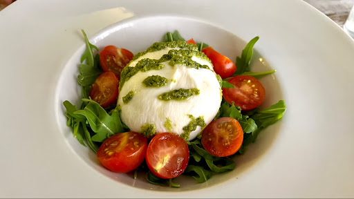 We ordered a rocket salad with creamy burrata, cherry tomatoes bursting with flavor, and pesto - all fresh and delicious. The pinsa was outstanding. We ordered the guanciale pinsa (kind of like bacon) with sun dried tomatoes and zucchini and the tartufo pinsa: This is the first time I’ve had fresh sun dried tomatoes. Everything was muy delicioso! The pinsa / pizza is some of the best pizza I’ve ever had. The tartufo pizza had sliced truffles, not just the oil, and incredible cheese. The tartufo pizza was an absolute feast of flavors.