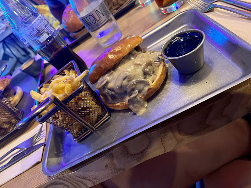 Read moreNo iba a dejar reseña, pero como nos lo han pedido... Venimos a este sitio tras probar la famosa juancheeseburguer en el puesto del mercado pensando que sería lo mismo y que va... Parecía una hamburguesa hecha por un adolescente. Mi sensación es que la materia prima es distinta, pero quizá solo se deba al hecho de que estaba mal cocinada. Pese a pedirla poco hecha, por los bordes estaba seca a más no poder, con trozos chiclosos. Te preguntan el punto, pero las cocinan igual todas. El bacon estaba duro y costaba masticarlo... La cantidad de patatas y de salsa escasas en comparación con el sitio del mercado. Incluso la hamburguesa me pareció más pequeña porque nos quedamos con hambre y en el mercado salimos super llenos. No es lo que te esperas de un sitio con hamburguesas entre 15€ y 20€. Decepciona y mucho, en especial tras probarlo en el mercado. Al reservar nos extraño que no estuviese lleno un viernes para la cena, pero al salir ya no nos parecía tan raro. No repetiremos y no lo recomendaremos, al menos este local. Eso sí, el ambiente es agradable, la localización no es nada mala y el servicio de la camarera es bueno, pero una hamburguesa de este rango de precios requiere algo más que coger la carne congelada y ponerla en la plancha hasta que está marrón. Me hubiese salido mas barato y me hubiese gustado más hasta un kebab al lado. Aunque suene duro.
