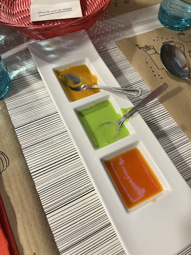 Llegamos 15 minutos tarde 🙏, lo siento. Solemos ser puntuales. 🤵 El chico no nos dijo nada de nuestro impuntualidad🕒, y nos trató muy bien🥰 El servicio es bueno👍 De hecho, íbamos a pedir pollo🍗 tikka y nos aconsejó el tikka masala. Hicimos bien en hacer caso porque justo era lo que queríamos y lo estábamos pidiendo mal🤦🙄 📙 En el local, hay carta en papel. Probamos: 🍗Pollo tandoori: estaba muy tierno👍 y tenía un sabor a especias que nos gustó🙂 Son 3 piezas bastante grandes. 🐓Pollo tikka masala: hay gran cantidad de salsa. Creo que es uno de los platos más típicos. Y nos gustó👌 Arroz Pilau🍚: un arroz aromático para acompañar al pollo tikka masala. La cantidad es suficiente para compartir entre 2 personas👫 Además, antes de empezar a comer, nos sacaron unas tortitas de garbanzos (si no entendí mal) con 3 salsas diferentes👏