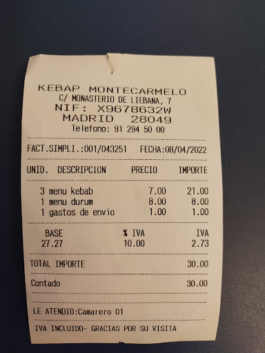 Read moreHemos pedido tres menus durum, y como el que recibe la llamada tiene el sonotone guardado en el bolsillo y no en la oreja nos ha llegado DOS menus KEBAB. Hemos llamado para notificarlo y el que ha contestado, (el mismo de antes) se ha puesto chulo diciendo que el nunca falla como si fuese un superheroe o algo. El pobre repartidor se ha llevado el pedido para intentar cambiarlo y despues de varias horas el establecimiendo no nos avisa ni nada y nos cancela el pedido. No hemos cenado y tenemos mucha hambre, estoy gastando mi rabia desde esta reseña pero siempre con respeto. Nada...