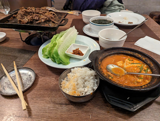 Read moreHe estado un par de veces, las dos veces me ha gustado mucho la comida. Para mí el plato estrella es uno de los arroces que se llama dolsot Bimbimbat (se queda algo quemado por los paredes del recipiente, se remueve y te vas encontrando trozos crujientes en cada bocado). Las empanadillas están buenas, no son nada del otro mundo, pero creo que hay que pedirlas. Por otro lado, no puede faltar una sopa y una plancha (al menos). La plancha viene sin hacer, quizá el encanto es eso mismo, que en la propia mesa te colocan un fogón y se va haciendo sobre la marcha, ellos (los camareros) están pendientes de ver qué ingredientes añadir a cada momento y de ir removiendo cuando se necesita. Lo que quizá, por decir algo, me falla en cuanto a comida se refiere, son los postres, ya que no tienen ninguno "típico", son postres comprados por así decirlo.