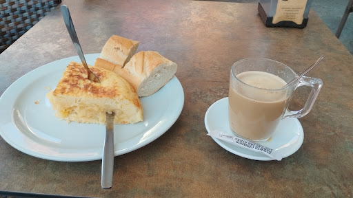 Read moreBar con terraza amplia y en una plaza cerrada sin coches. Te ponen tapa con la consumición y tienen una carta grande de bocadillos, raciones, sándwiches, platos combinados etc. Todo bastante decente si no fuera por la cantidad de patatas fritas que acompañan tanto a las tapas como a los platos y lo malas que están...Supongo congeladas de bolsa pero no se donde las fríen que parecen de hace una semana...Tienen que revisar esto porque estuvimos ahí 3h y los 4 que estábamos alucinando con el tema de las...