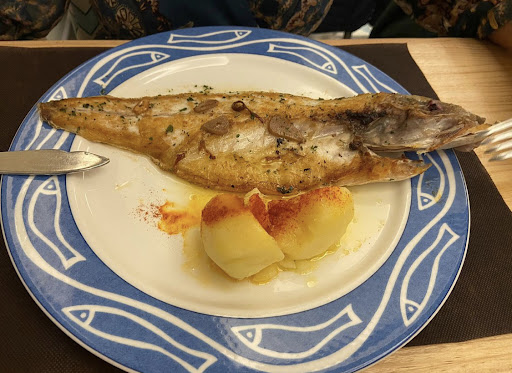 Hemos comido un fantástico menú delicioso de entrantes: croquetas caseras riquísimas, patatas rellenas de salmón cubiertas de queso fundido y caviar. Berenjenas rebozadas con miel. Ensaladilla rusa con ventresca de atún. Luego a elegir pincho de merluza o pluma de ternera. Yo soy más de pescado, y la merluza estaba exquisita, pero es que me dieron a probar la carne y no podía creer lo tierna, sabrosa y jugosa que estaba! Los postres surtidos estaban riquísimos, caseros y recientes. Pudimos probar un poco de cada uno y nos supieron a gloria. Todo ello con su vino y agua incluidos, más infusión o café y un chupito. Considerando que nuestro menú era el más económico, no puedo imaginar las lágrimas derramadas disfrutando del menú superior!! Calidad y cantidad sin reparo. Quedamos MUY satisfechos. Luego el local estaba perfectamente acondicionado para la situación actual de pandemia con mesas para 6 comensales máximo e incluso mamparas separando las mesas. Abundancia, calidad, confort y seguridad a un precio muy razonable. No se puede pedir más!!... Bueno, que nos toque la lotería!! Ya, por pedir...