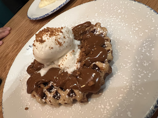 Por eso de postre nos pudo la gula, y pedimos 3 platos, sus grandes clásicos, el gofre con dulce de leche (rico, bien de dulce leche) y la tarta cremosa de queso (en mi opinión es una tarta que está mejor templada para que se derrita mejor el queso, aquí llegó demasiado fría para disfrutarla bien), y también pedimos el Mascarpone, Nutella y pistacho a la moda, muy rico, fue por el que más nos peleamos!