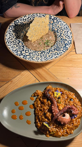 En esta última visita pedimos: Croquetas gourmet. Same vibes que lo indicado en su web🌐: "La solución a todos los problemas la tienen las croquetas... ¡y las nuestras están buenísimas!". Había que pedirlas 😛. Las de Gambón 🤯😍 Flores de alcachofa.‼️Las alcachofas son naturales 🍻🥳 y están increíbles 😮. Éramos 2👭, se portaron muy bien preguntando si añadían una alcachofa más que hacer la ración de 4. Arroz con pulpo🐙. Mira que soy valenciana 🌴 y a veces desconfío 🤨 de los arroces🥘 de fuera de "La millor terreta del mon🌊🏖️" Pero, 👀 ojito a este arroz que es muy TOP 🔝 Torrija🤤. Increíblemente espectacular 🏆🏅. Fue lo mejor de la cena 👌👏. La recomiendo muchísimo📝