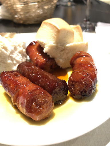 Excellent food and great wine recommendations at a very reasonable price - very little English spoken - the owner / manager helped us out and was great after an initial challenge with being waited on by someone who spoke no English and my broken Spanish couldn’t get the job done - razor clams - rice with mushroom and oxtail and the peppers were all stars - also had bone marrow and tiny cold snails