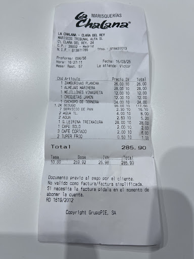 Read moreTodo un acierto!! Después de haber comido en el local de Avilés este pasado mes de julio teníamos que probar uno de los locales en Madrid. Comimos en Clara del Rey por cercanía, y es todo un acierto, por calidad del producto, y por precio, en nuestro caso uno de los menús. El local es amplio, con dos plantas, y con ascensor para personas con movilidad reducida, carritos de bebé, etc. El aparcamiento por la zona, pues complicado, y la calle Clara del Rey está sujeta al SER, por lo que hay que estar un poco pendiente de las horas del ticket si aparcas en la calle. Como decía, local amplio, bien iluminado, con suficiente espacio, zona de barra en la entrada, con mesas altas. Nos tocó en la planta -1, bajando por unas escaleras al fondo del restaurante. Para comer elegimos un menú cerrado para 2, con un importe total de 98€ (No por persona, sino precio total para los dos). El menú empieza con una parrillada de marisco con un bogavante a la plancha, seis langostinos gordos salvajes y 6 zamburiñas. Sigue un lomo de lubina al horno con base de patata panadera. Continúa con un solomillo de cerdo de bellota "BEHER" a la parrilla con setas silvestres; y termina con 3 postres: un platito (no individual) con queso azul con dulce de manzana, y ahora sí dos platos con una porción de tarta almendrada de arroz con leche y una bola de helado de chocolate belga para cada uno. Todo espectacular, con cantidad más que suficiente para comer dos personas y quedar satisfechos (nosotros no pudimos con todo). Calidad sobresaliente, todo en su punto, quizá el solomillo de cerdo se quedó un poco crudo en el interior, pero solucionable pidiendo que lo pasen un poco más o indicando a la hora de pedir que esté bien hecho. La bebida es lo único que no está incluida en el precio. En nuestro caso una botella de sidra espumosa Brut Pecado del Paraíso (12€) y...