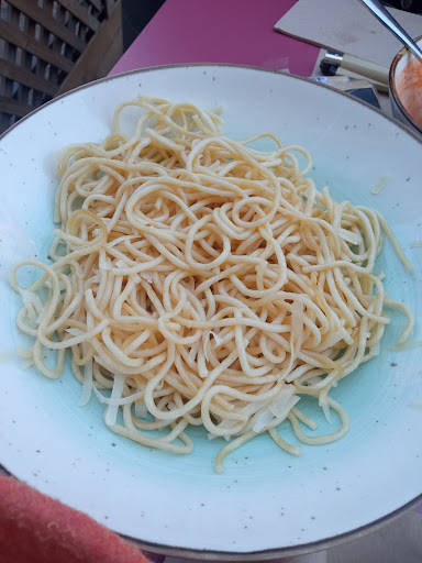 Read moreFuimos para comer el menú del día y pedimos los tortelini con queso a la marinera, pero no les quedaban y nos sugirieron lo mismo pero con espaguetti, lo cual nos pareció bien a los dos.