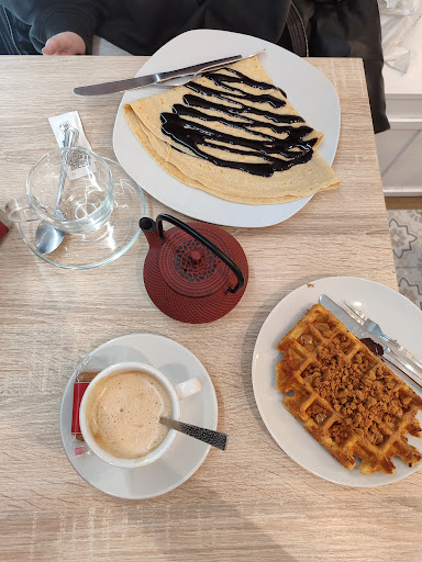 He estado unas cuantas veces aquí y solo he tenido buenas experiencias. El local es agradable y el trato recibido siempre ha sido cercano y profesional. Ricos gofres, crepes dulces y salados, tortitas, helados estupendos, cafés y tés especiales muy ricos y preparados con mimo y también tienen bebidas frías (especial mención a la sidra Maeloc que me encanta). Pero mi favorito sin duda es el chocolate a la taza, que además tienen de distintos sabores a elegir! Me quedo con el de chocolate negro, pero también lo hay de avellana, blanco, con naranja… La última novedad, que en mi opinión habla MUY bien de la atención que dan a toda su clientela, es el rinconcito infantil de cuentos y juguetes. Una mirada amable y atenta hacia la infancia que creo que debería ser la norma en todas partes.