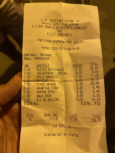 Read moreFui a La Estación 7 con muchas ganas de disfrutar de comida peruana, pero la experiencia fue totalmente decepcionante. Pedí un pollo broster y terminé esperando casi una hora para que llegara a la mesa. Durante la espera, lo único que recibí fueron excusas por parte del personal, que además mostró muy poca disposición y amabilidad. La atención fue descuidada, sin interés en dar un buen servicio, y sinceramente, se notaba la falta de organización.