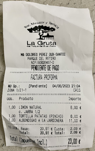 Después de otros 5 min, mi madre se levanta para pagar y, tras un poco de tiempo, por fin consigue que nos cobre.
