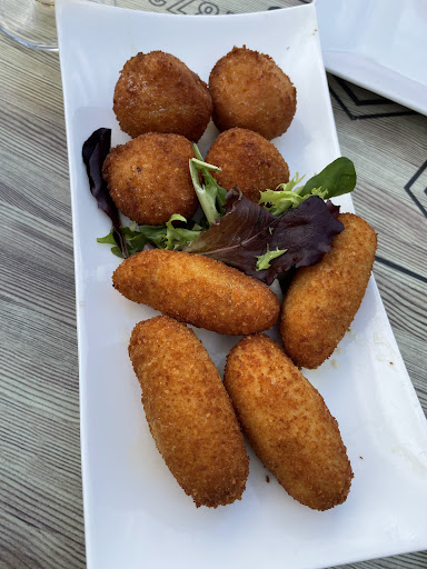 Pedimos: Dobles (no muy frías y con poco gas)👎 Tercios (muy frías, perfectas)👍 Croquetas de jamón ( eran 95% bechamel y unas pequeñas tiritas de jamón) 👎 Hamburguesa (pan frío, carne y vegetales pobres, queso de supermercado, todo seco) 👎 patatas grandes 👍