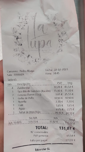 Hemos ido a comer de carta 2 personas y la comida aunque rica, muy escasa. Hemos pedido la cuenta, nos hemos llevado una sorpresa porque era muy abultada para lo que habían servido, hemos pagado porque teníamos prisa y nos hemos ido. Luego en casa hemos revisado el ticket y nos han metido sin avisar 3 cervezas de mas, 1 agua y nos han inflado el precio de todos los platos con respecto a lo que anunciaban sin avisar.