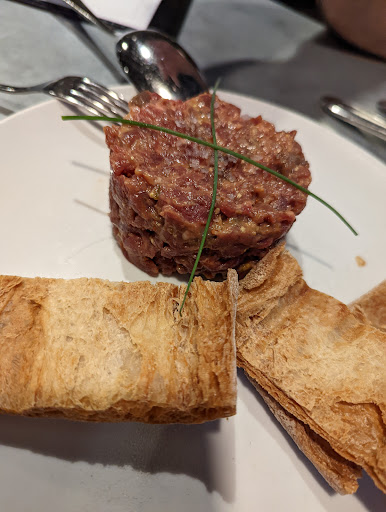 Read moreParty of 4, we hadn't booked but the staff did manage to find us a table. Waited about 20 mins for waiter to arrive. In the meantime we ate the rather dry and stale bread that was already on the table. (Little did we know we would be charged €2.20 each for the privilege). 2 of us order the steak and chips. It was served as a starter sized portion with diced steak dumped on a small pile of fries (not proper chips) no veg or any other sort of accompaniments. The other 2 in our party had lamb cutlets. The cutlets were miniscule and was served with straw style chips along with a huge padron pepper. At best the food was OK but I have to say after our first day traipsing round Madrid and looking forward to a nice meal, we were left hugely disappointed. We will definitely choose somewhere different to eat for the remainder...