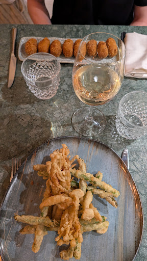 Read moreA tip from a friend who's lived in Madrid for a long time and comes back often. This is Paloma's favorite and that's why I went. They delivered on the atmosphere, on Friday night you could feel that the weekend had started, these people were there to enjoy themselves and dressed up for the occasion. The food was perfect. We had the crab croquettes, I'd take a mix to share next time as 8 become too much for 1. Tempura of asperges and mushrooms are very yummy. Main course the cod with summer truffles and lamb meatballs. All very good in taste and also for the eye. I like it how they pour the wine by glass from a magnum, as it's better for the taste. As desert we had the torijas, the tasty fried milk bread. To die for. If I'd have to find one small point of improvement, I'd make sure the staff doesn't have too much fun together which might come at the expense...