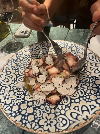 This place was recommended to us by the manager of Da Michele restaurant when I asked for some good Spanish restaurant nearby in the Salamanca area next to our hotel The whole street is filled with awesome Spanish places. We tried La Monte on the first night The place is well decorated and packed : good vibes The waitress was helpful in terms of quantity of food to order We followed the recommendations of Google guides and some food bloggers. Ensalada Burrata: delicious burrata in the middle of mixed salad with fresh tomatoes, delicious salad so refreshing Second appetizer: Ceviche Corvina: refreshing ceviche with Mango zest Third choice was: mixed croquettes four cod and four mushroom and truffle. So creamy and delicious The two mains: Rape con Arroz Melo- Angler fish on top of rice The best was the last: Pulpe Pure y Trufa Delicious octopus on top of purée and shaved truffles decorating. With their secret sauce so delicious They also serve a basket of mixed...