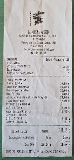 Read moreI’m not easily swayed into writing a restaurant review after retiring from a career of doing it… But with La Morena, I’m delighted in making an exception. Tucked away just down from the Plaza de Castilla Metro station, this welcoming bar and restaurant is truly one of the gems in all of Spain. Fantastic food with a wonderful diversity of dishes, well crafted cocktails, and wine pairings makes this place worthy of a stop. The fact that La Morena has earned the coveted Michelin star speaks for itself. . Order anything on the menu, you can’t miss. Chef “Big Pappa” is a master with the fusion offerings and the staff makes guests feel warmly welcomed. Intimate, personal, worthy of special occasions and just a night out....