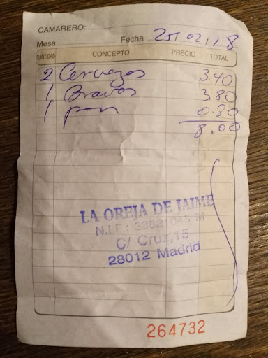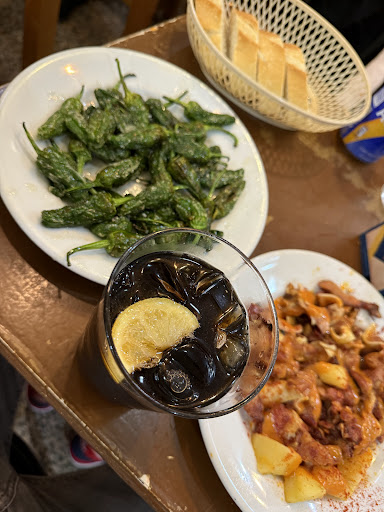 Horrible turist-oriented approach. Tourist trap. Drain&EasyGain. Looks nice, like other bars in neighbourhood even more natural than others thus no fancy front ornaments, but unfortunatelly people working there are rude (read further about my adventure), incompetent and trying trick you. First: prices . On first sight looks attractive in comparison to neighbours. But finally appeared there are 4 different price lists/menus. On front wall (best prices) , on wall above main bar (about 0.5-1.5€ difference)on, on menu on tables (about 1-2€ MORE difference) , on wall menu inside main room (again differ from outside one). Yeah ok - its normal that the price could differ when you take a table or sit on the bar but if they trying to scam me when i know this rule its pretty nasty- they count my highest price on the bar! Second: Dont ecxpect to get a tapa if you order a beer. Beer is very expensive for 200ml glass 2.5€ Third:Menu . Looks spanish but its not. The real dishes served here , with well known spanish standards names, are completly different in preparation and taste. I.e patatas bravas with glue sauce made with flourish, low quality potatos baked with pork lard to topup flavor. Taste like Hungarian cuisine except low quality ingredience. They have interesting position in menu orejas - pig ears. But to prepare this well ears need to be marinated about 2days and well cleaned before. Otherwise smell when fried and are chewy, hard to eat texture, not crispy. THEY bill you for all additions like bread or tipos. Fourth: dish quality : we have ordered Gambas al Ajillo. Hard to spoil dish if you hv decent ingredience but unfortunatelly they did it! Our schrimps were stinky, used oil cloudy, garlic ROTTEN and in SAME TIME some, burned to charcoal and taste bitter. No petersillie even when i asked to add. On my notice waiter told me that there are no such addition like petersillie and smell and taste are appropriate(how did he know without tasting??!!). I hv tried one schrimp and returned the dish and there loud complains on me have started from staff side(waiters and cook). Some spanish comments were rude and highly offensive therefore we decide to leave but no without problems: a. prices billed were from "table menu"(we sat on the bar) b. They billed gambas which was returned. Argueing was necesary because i refuse to pay cheated bill. Finally i have to tread to call guardia civil or POLFA (fiscal police) and then they passed. My...