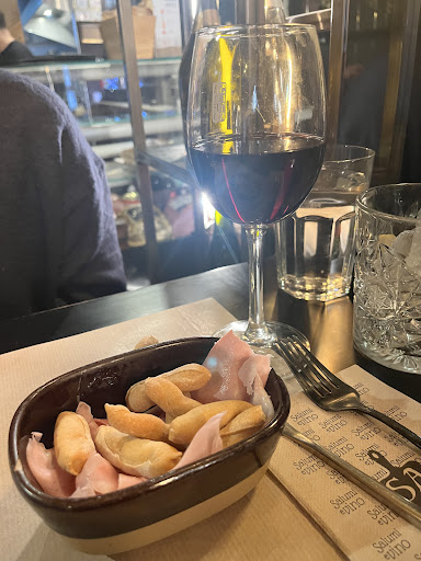fuimos a probar este lugar por el que pasamos de casualidad, la verdad, a pesar de las buenisimas resenas, me quede bastante decepcionado. Supuestamente es una taberna italiana, pero en la realidad no lo es, es simplemente un restaurante con algun producto italiano y pretendiendo hacer pinsa y pasta. La pasta con albondiga, que deberia ser con salsa de tomate (soy italiano) estaba hecha "al seco" y por lo tanto la albondiga estaba dura (mi acompanante dejo el plato), la pinsa con porchetta (embutido riquisimo de cerdo con especias) era simple jamon york (rico pero nada que ver con la porchetta) y ademas estaba toda cubierta con mayonesa (cuando ponia que llevaria queso crema), cosa que hizo la pinsa pesadisima. Y finalmente la mortadella trufada (que tambien suele tener un sabor muy fuerte y peculiar, era simple mortadella). No me importa que hagan una pinsa con mortadella normal o con jamon york, pero no las vendan por porchetta y mortadella trufada. Los embutidos italianos son riquisimos y es muy triste ensenar lo que no son...
