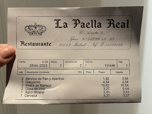 Read moreTerrible experience...I was referred here by a local and I should have known better once I walked in. One it was all tourist (it is still close to a tourist area), second it was empty, three there were 2 people working the whole place. Be careful because I ordered paella for one and there is a minimum of 2 people per order. So if the total is $16, you will pay $32. If the food was good, I would suggest it. However, completely not worth the money at all. You can go to Mercado San Miguel and get much better food for way less. Do not waste your time at this terrible place with basic food. Also, they will put bread on your table and charge you even if...