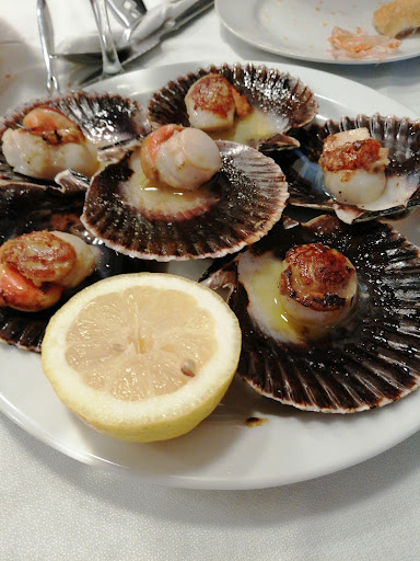 Para aguardar la llegada del arroz tomamos unas zamburiñas. Estaban buenas. Se nota que trabajan con buen producto porque el bogavante también lo era.