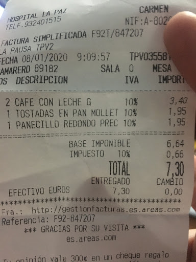Read morePicaresca hechahnegocio.a mediodía pague una hamburguesa de 12.95. me mandan a la mesa que ellos me lo traen...me han puesto otra. Con lo que tengo en la cabeza (aquí solo se viene porque tienes a alguien en el hospital) me lo he comido, pensando que no me había fijado yo en que la que pedí llevaba huevo...vuelvo a por la cena...y me doy cuenta de que me sirvieron una de 8.95 (4 euros que ya me han robado). Ahora que voy a hacer...callarme y ajo...pido una flauta iberica nada barata (5.95), otras cosas y una infusión...y veo que me han cobrado un "combo ibérico" de 7.95 eurazos en el que me han incluido la infusión...intenta convencerme de que es "por mi bien" y que "les dicen que lo hagan asi"...solo que la infusión aparte cuesta 1.45...vamos, que por mi bien pretendía cobrarme un euro y 5 céntimos de más.y encima es norma de la casa. Vamos...si vienes, revisa el...