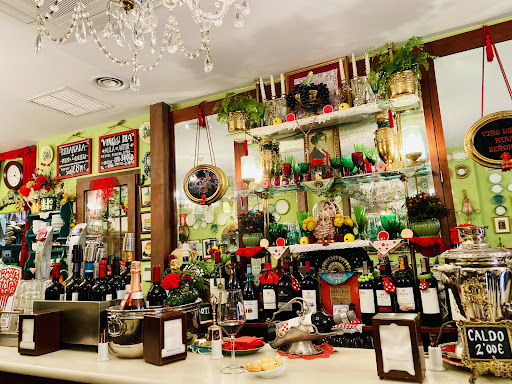 Read moreWhat a lovely hidden place at Calle de la Cava Baja! The place looks like stepping into a different world. Decorations are a bit over the top but it does create a lovely atmosphere. The place is rather small and so are the tables and wooden stools. But that doesât really matters cause it gives a kind of cozy feeling. The food weâve ordered was really nice but not extraordinary. Although I really have to recommend the cod with cream cheese and the dried beef, extremely delicious! Bread was fresh and crispy. The wine weâve had was very nice and the service the best! The young girl, working behind the bar and also in the restaurant was a true host! Friendly, welcoming, honest and most of all, very funny! She made our regular lunch into a wonderful and funny experience! Love to come to this...