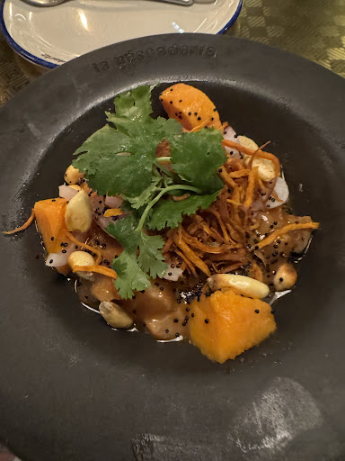 Read moreEveryone wants to sit outside (in any restaurant) but they will be all reserved by 8pm. But I came for the food and the inside space is really nice (dark wood but modern). Check with the waitstaff and they will find you a nice table. My waitperson was Caroline and she couldn’t have been more friendly and happy to explain the menu to me. I noticed that they had plenty of floor staff and all customers were being served efficiently (it doesn’t hurt that they are all young and attractive either). I even loved how they wore t-shirts with their role (staff, bar or kitchen) on it. While I didn’t have a cocktail it seemed to be a specialty of theirs. They had a great cocktail list and I saw them being made expertly. I had a vino tinto and then some nice house rioja. My only small gripe is that they are not so consistent with the amount poured in the glass ( my second was a bit under). I started my meal with the bull tail Tacos. They were juicy and delicious. I see why they are a best seller. I then had the baby squid (chipirones frescos encebollados) which for me were the highlight - absolutely outstanding! A must try. The earlier complementary rustic bread (came with a bowl of olive oil & tapenade mix) was perfect to soak up the juices from the squid dish. I loved the food at La Pescaderia and thanks to Caroline for...