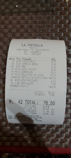Señor encagado, no podemos estar eternamente con esta canción. No entiendo bien sus respuestas, y creo que hasta la mula Francis sería capaz de contestar con más claridad de lo que lo hace usted. En mis comentarios he reflejado una situación (que ha sido provocada por su avaricia por no querer servir un inocente vaso de agua y querer cobrar 2,50€ por una botella), y también unos datos referidos a sus desorbitadas e injustificadas subidas de precios que en ningún momento he visto que usted haya puesto en duda. Lo lógico es que usted hubiese defendido que sus pinchos son celestiales, sus latas de conservas son de oro, que sus subidas de precios desproporcionadas no son su culpa, que no es un machista cobardica que solo se atreve a faltar el respecto a las mujeres, etc. Incluso en alguna queja de otro cliente le llaman, con toda la razón, macarrilla. Pero no, usted siempre responde con la misma retahíla insustancial y bobalicona con la que ha contestado a todas las personas que han puesto quejas y han razonado el porqué de las mismas. Esto se puede ver fácilmente en Trip Advisor o en Google (solo hay que buscar en los comentarios seleccionar los pésimos, o los peor valorados según donde se mire) y salen unos cuantos. Da la impresión de que, como se dice coloquialmente, usted tiene una jeta de hormigón. Y yo me pregunto, ¿por qué nunca da alguna respuesta razonada y sensata? Como digno heredero del Lazarillo de Tormes y otros celebres pícaros españoles, sabe que siempre habrá incautos a los que poder dar lata de sardinillas por anchoa donostiarra o mini vulgares e insulsos pinchos como si fueran auténticas delicatessen. Mesero, estoy seguro de que usted desconoce la Fabula del Rey Desnudo, léala, que le hace mucha falta leer. La moraleja es que hay personas que antes que pasar por tontas y reconocer que les han engañado, dice que el rey está vestido, cuando (como pasa con su cantina) está irremediablemente desnudo. Y si no entiende la moraleja, haga como en la fábula, pregúntele a un niño. Seguro que se lo explica. Como las redes sociales guardan todo me he ido encontrando información que quiero compartir aquí y que se pueden ver en las imágenes adjuntas. Son tres tiques de consumición. El primero de diciembre de 2017, el segundo de septiembre de 2018 (ambos encontrados en los comentarios de la pochola que se pueden encontrar en Trip Advisor). El tercero es el que tenemos de ayer día 2 de Noviembre de 2019. Me han sorprendido muchísimo algunas cosas: En el tique de 2017 los pinchos de huevo (trufa o chistorra) cuesta 3€, en septiembre de 2018 le han maquillado (aunque no ha habido dinero para modificar la página web donde como se puede ver en la última imagen siguen siendo unos vulgares pinchos y no una degustación) como degustación y el precio ha ascendido a degustación y más allá (lo han más que doblado a 6,90€) y en Noviembre de 2019 ya estamos en 7,90€. Desde Diciembre de 2017 hasta Noviembre de 2019 la inflación que ha afectado a los pinchos de los huevos es de un 163%. Ya en Dic de 2017 y a 3€, seguro que estaban obteniendo una suculenta ganancia, o sea que a 7,90€ es simplemente un atraco de guante blanco. Es un poquito obsceno, cobrar por 8 (cada degustación tiene 2) pinchos cagarrutas 31,60€ En septiembre de 2018 el cubierto está a 1,50€ pero en Nov de 2019 está a 2€. La inflación es en este caso menor, pero alcanza la muy respetable cantidad del 33% Las croquetas que en Dic de 2017 se venden a 8,80€ la ración (una ración de 8 croquetas equivaldría a 1,1€ por croqueta que ya está bien), para poder aplicarle la inflación abusiva de esto señores, ya en septiembre de 2018 se venden por unidades a 1,65€. En este caso la inflación sube a 50%. La verdad es que la primera vez que vas, te pueden engañar, pero si has ido varias está claro que te mereces que te engañen. La verdad es que cada uno le regala su dinero a quien quiere o a quien es...