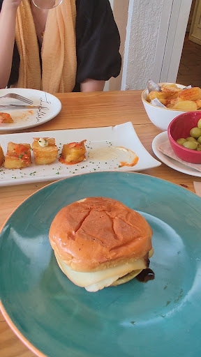 The food was generally very, very good, the smoke burger was one of the best ones I've ever had, but it is on the smaller side which is a bit disappointing since it's priced at 14€. My friend had the salmon poke and said that it was divine, meanwhile we were both disappointed by the small ration of papas bravas, especially since it's priced at 7,90€ and we each got like 4 pieces, each. The tinto de verano was served in a huge cup, well priced at 3,50€, and the dessert, a 5,90€ apple crumble pie, was divine.