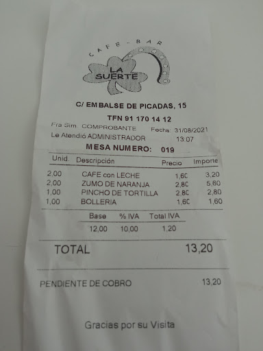 Read moreUn engaño. Tomamos dos desayunos tras dejarnos orientar por la camarera, quién nos comentó las ofertas disponibles. Café+Tostada+Zumo y Café+Pincho+Zumo. Después nos cobran todo por separado. Tras la sorpresa, la camarera nos comenta que, al pedir pasadas las 12:00, ya no hay ofertas de desayuno. No entendimos nada y le pedimos explicaciones. Ella reconoce que fue un error suyo, no nos hizo saber en ningún momento que, pasadas las 12:00, ya no había ofertas de desayuno. No entiendo cómo nos sirven una oferta que nos han comentado sin informarnos en ningún momento que es falso y ya no hay oferta, para posteriormente cobrarnos todo individualmente. No nos dieron ninguna solución, nada más que pagar y reconocer que fue error suyo. Lamentable. Así que tuvimos que pagar: 2 desayunos=13'20€. Me...