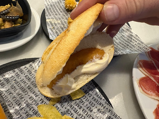 Read moreLeo que han mejorado bastante. Ja!! Desde que habían cambiado el local y mezclado 100 Montaditos con La Sureña no habíamos ido. Ayer jueves fuimos y para empezar, sorpresa!! No tienen la promoción 2x1 de La Sureña. Esta sí que es buena. Pero vale. Ya que estábamos vamos a pedir: unas palomitas de pollo que solo se comen los adolescentes que por allí paran porque eso no se sabe qué es. Un perrito que....es un perrito. Un montadito de rabas con mayonesa que vale 1,8 y llevaba una miserable raba (caso a parte que los panes de los montaditos son mucho más pequeños que antes) que hasta me dieron ganas de acercarme a la barra, enseñárselo a la camarera y decirle "¿en serio?". Y el plato de paleta que era regulinchin. Ah! Y también han subido el precio de los cubos a 5 euros, aunque eso será en todas las...