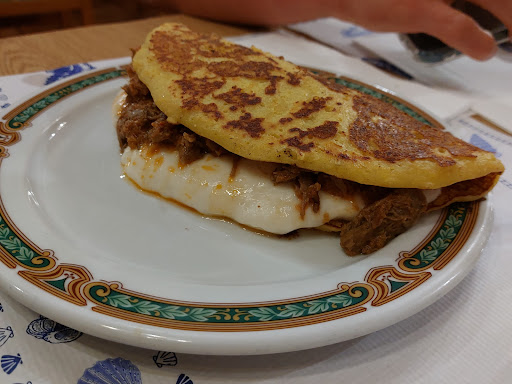 For main dish, we desided to order the Cachapa "Colonia Tovar". This was the best decition, I haven't eaten anything that good in a long time!!! The soft, little bit sweet, corned baced Cachapa, combined with the baked bananas matches perfectly with the salty pulled beef, black beens and the cheese. The dish had a perfect size and we were full after it.