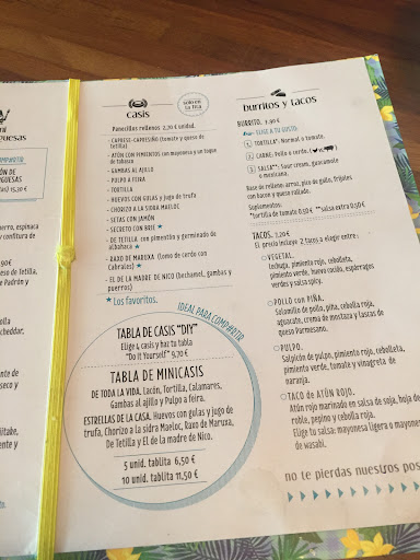Yo he pedido dos tacos: uno de camarón y otro de atún rojo. El de atún era tataki que me ha llegado más frío que Siberia, se lo he comentado y me han traído uno más calentito. Sé que el tataki no se tiene que hacer mucho por lo que puede estar templado pero tampoco tiene que estar frío. Al final, el taco estaba medio bueno. El problema principal de los tacos es que te los traen en un cacho de madera raro sin plato y si se te sale del taco la comida, se va a la mesa. No sólo eso, sinó que la tortilla del taco está cruda. No la han calentado ni pasado por la sartén ni nada. El otro taco era de camarón. Pero literalmente de UNA (1) UNIDAD DE CAMARÓN. Un poco triste por valer los dos tacos 8'9€.