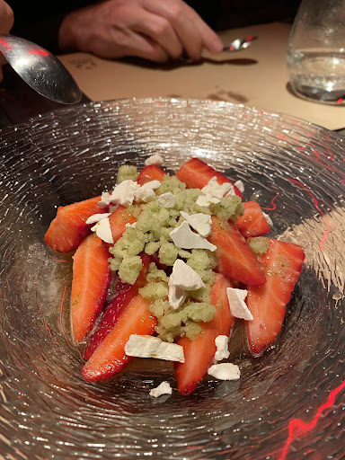 Read moreNo puedo opinar sobre los cócteles que sirven en este establecimiento pues no los probé. Opino sobre la comida pues fui a cenar ayer a este local con un amigo. La parte de arriba está destinada a los cócteles, el sótano al restaurante. El sótano es lúgubre y con música de fondo bastante alta que pedí que bajaran un poco para poder hablar con mi amigo cómodamente. Las Gildas con pulpo que se venden como producto estrella y cool no son nada del otro mundo. Un pequeño trozo de pulpo enlatado pelín correoso ensartado con guindilla y aceituna aderezado de una salsa. Las alcachofas confitadas estaban ricas y las comimos con gusto aunque eran pequeñas y tocábamos a dos por persona. El Hanger Steak con guiso de pimientos asados llamó mi atención en la carta principalmente por el guiso de pimientos. Al poco de pedirlo vino el camarero a decirnos que el precio del plato en la carta (17), no era tal sino que por el hecho de que ese día hacían el plato con otro tipo de carne el precio ascendía a 22... 🙄 Pues nada... Por si no fuera suficiente con la subida improvisada de precio (un restaurante debe cobrar únicamente los precios que pone en carta), cuando llegó el plato el guiso de pimientos brillaba por su ausencia. En su lugar había cuatro exiguos trozos de pimiento seco a la plancha. Adiós al jugoso acompañamiento a la carne que esperaba en forma de guiso. La porción de carne era más que exigua, considerando los 22 euros del plato. Pero lo más irritante de la noche fue que, con apenas gente en el local, tuvimos que esperar más de media hora entre plato y plato, razón por la cual, muertos de hambre pedimos pan en dos ocasiones, pan que nos fue cobrado a 4 euros en la cuenta. Precio total de la cena, sin postre (no pedimos porque queríamos largarnos del sitio cuanto antes): 52 euros.