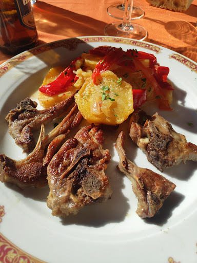La comida.. la típica de restaurante de barrio. Pero nos sorprendió que era abundante (ración de revuelto de morcilla y huevos rotos) y llena de aceite por debajo.. y a 15euros pues ya me diréis.. Dicen que en la ración de huevos rotos el jamón es ibérico..pero para nada. Y si va un vegetariano pocas opciones tiene. Yo me pedí una ensalada,que no hay en la carta y tal cual,os prometo, un kilo de lechuga,un espárrago,un tomate y una lata de atún volcada. Me quedé como diciendo un espárrago? A 9 euros.. esperaba algo más estético o más elaborado jaja. la carne es verdad que estaba muy jugosa y tierna (aunque echamos de menos el sabor que le da la parrilla). A mi como no me gusta la carne poco hecha, me la cortaron en trozos y me la pasaron más. Me lo comí Agusto. Aunque la guarnición bastante escasa.