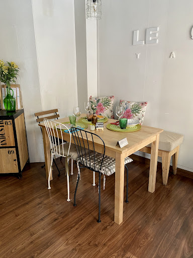 Restaurante pequeño con un toque acogedor.