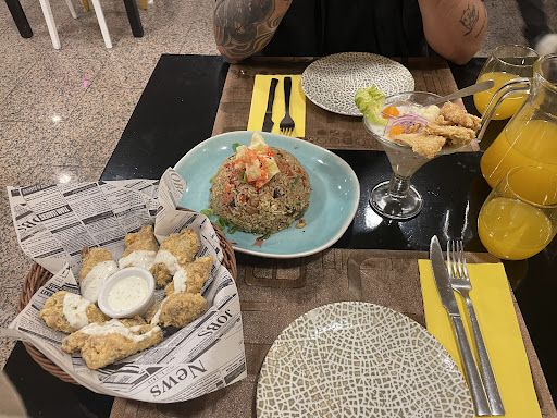 Read moreFuimos a cenar un domingo sin reserva, llegamos y el local estaba prácticamente vacío, solo había una mesa ocupada, la chica que nos atendió nos dijo que esperásemos que tenia que limpiar las mesas, es comprensible, pero ¿cuánto se tarda en pasar un paño, poner dos cubiertos y una servilleta? Esta chica 10 minutos. Finalmente cuando nos sentaron nos dio la carta y se fue a seguir hablando con sus compañero… guardó una tarta, atendió a un Uber y se fue a comer. Nosotros tuvimos tiempo de sobra para decir que íbamos a pedir y en ningún momento se nos acercó y ni siquiera nos miró para tomarnos nota. Sus compañeros de la barra tampoco parecía importarles si las mesas estaban atendidas o no. Pasaron mínimo 15 minutos hasta que la chica que ya estaba comiendo nos miró y le dijo a su compañero que nos tomara nota. La atención muy deficiente la verdad. Habían 3 personas y trabaja 1 y a medias. Repito que no habían más que 3 o 4 mesas que atender. El personal estaba más entreteniendo bebiendo el resto de los cócteles que iban preparando, no sé si porque eran cócteles nuevos y los tenían que probar o porque el camarero era nuevo y tenían que verificar que el cóctel estaba bien hecho. Verificaron todos y cada uno de los cócteles que salían. La chica que mencioné antes, no nos volvió a atender más, estaba ocupada haciendo una videollamada con una amiga riéndose a carcajadas mientras nosotros no sabíamos a quien pedirle el postre. Terminamos de comer y los platos se quedaron en la mesa vacíos muuuucho tiempo, la chica pasaba por alado nuestro y es que ni nos miraba, paso hasta con la bandeja vacía y no fue capaz de recoger los platos. Teníamos la intención de pedir unos cócteles también pero visto lo visto, los camareros ya iban pedo y no queríamos contribuir al alcoholismo. La comida sin más, el chaufa especial de especial no tiene nada, poco sabor y sin...