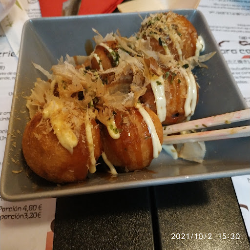 No es que la comida esté mala, ni mucho menos!!!! Adoro su ramen de miso y las gyozas, sin hacer menos a la ensalada de alga wakame, cuyo pecado es que siempre quiero más!!! Y he probado casi todo de su carta porque fui a uno de los bufé que organizan los jueves de noche, y he de decir que no decepciona. Los takoyaki, como buñuelos\croquetas de pulpo, quizá tengan poco bicho pero de sabor son muy buenos y no resultan pesados a pesar de que no deja de ser besamel frita. La repostería es casera y se nota. Ayer probé un bizcocho de yuzu súper esponjoso, y si además compartís alguna publicación en RRSS os invitan al postre. Qué más se puede pedir???? Manga!!!