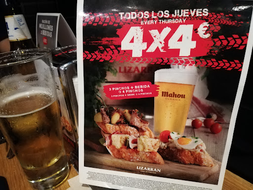Local muy agradable y económico para la zona. El personal es súper atento y educado, tanto en la mañana como en la tarde, de hecho es el mejor activo que tiene el Lizarran de Padre Damián. Pongo solo una estrella porque se nota que falta personal, lo que ya lleva tiempo afectando a la calidad de servicio (mesas, terraza, baños, pintxos calientes...). Supongo que, siendo el local insignia del grupo, en algún momento se cuidará más este tema. Llevo años viniendo a este local y parece que últimamente se han abandonado a la inercia de no tener (aparentemente) competencia en la zona. Quisiera añadir que no parece algo puntual. Ayer volví por la tarde-noche con un grupo de amigos y... sorpresa, NO HAY COCINA! Pedimos una cerveza por tomar algo y porque el chico fue muy amable, pero vamos, parece que esta empresa está a un paso de poner unas maquinas de vendíng...