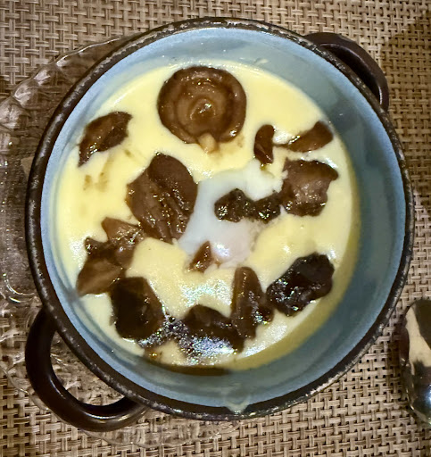 Read moreFuimos a comer entre semana, y pedimos dos menús del día con todo distinto para probar más cosas. Como entrantes, escogimos el meloso de patata (parmentier de patata trufada con salteado de setas y huevo a baja temperatura) y las croquetas caseras de jamón. Las croquetas no nos convencieron (el relleno no era cremoso ni tenía demasiado sabor a jamón, y estaban algo aceitosas), pero el meloso de patata estuvo increíble (el parmentier realmente meloso, y el resto de sabores muy equilibrados. Es un plato por el que volveríamos). Para acompañar, nos sirvieron unas rebanadas de pan sin nada a destacar. Como principales, escogimos coplitas (tiras de pollo de corral con salsa barbacoa) y dim sum de rabo de toro con melaza de boniato. Las tiras de pollo no nos gustaron (sabía muy fuerte el aceite), pero los dim sum sí (el relleno muy rico, y el toque de boniato un acierto). Personalmente consideramos que la rúcula sin aliñar no aporta nada más la ilusión de un plato mayor, y que podría ir acompañado por alguna ensalada aliñada. Para finalizar, pedimos la tarta de chocolate y la de queso (de cabra). Pese a la pinta que tiene, la tarta de chocolate no es apenas dulce, y su sabor tampoco nos convenció. La de queso en cambio sí que nos gustó más (no es para todo el mundo, ya que el sabor a queso es intenso), quedando muy equilibrada con la mermelada que...