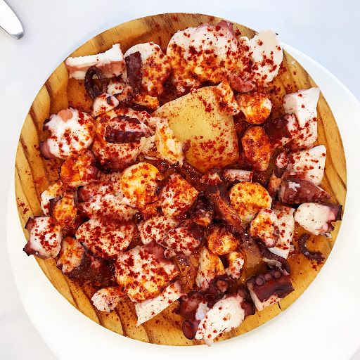 Los entrantes del menú especial: Pan, Aceitunas y Alioli. Me ha gustado mucho el Alioli, aunque también es verdad que no suelo tomar Alioli y es posible que me haya gustado más de lo normal. Tomate con Ventresca y un plato de jamón con picos. Estaba bueno! Pulpo roquero con pure de patatas (que lleva pimentón y trozos de almendra), me ha sorprendido que le echaran almendras, es una buena combinación. Me encanta este tipo de pulpo, se deshace en la boca, aunque a veces cuando son tan pequeños, tiene partes que son crujientes. Gambas blancas a la plancha junto con vieiras. Tienen un@s buen@s cociner@s, estaba todo en su punto. La salsita que tenía la vieira me ha encantado! Increíble! Plato Principal: Arroz con marisco pelado, el arroz tiene: gambas, almejas y trozos de sepia. Como decía antes, un arroz finito, con socarrat, estaba genial; muy sabroso y rico, me ha gustado mucho y la cantidad de trocitos que ponen, no es mucha, pero esta bien, es justo lo que quería, tienen otros tipos de arroces que tendré que probar. Postre: Flan de huevo y cafés. El flan casero 100% y con buen sabor, yo que no soy de postres, me lo he comido casi todo! Del café no puedo decir nada, porque no sé opinar sobre café.