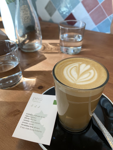 From a coffee shop that roasts their own coffee, I have very high expectations. I’m happy to report that this place met my expectations perfectly: the flat white I ordered was strong on coffe, with a lovely crème, with just the right amount of milk to compliment the coffee.