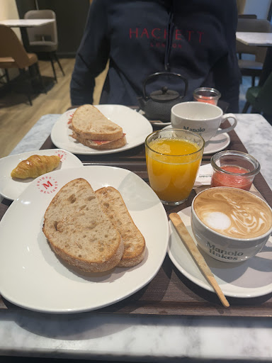 La atención es pésima. He ido a desayunar cinco veces y a merendar una. Esta es la experiencia en desayunos: hasta que vienena la mesa y traen la carta (en la mesa no hay), unos diez minutos, tardan en tomar nota bastante porque llevan una especie de tablet que no debe ser sencilla... Luego traen la bebida y ellos mismos te dicen que aún no han puesto la tostada, que llega unos diez minutos más tarde cuando no te queda bebida. si pides un vaso de agua ya olvídate. A todo esto cuando te traen la bebida te preguntan si quieres azúcar y si dices que si, te dicen de que tipo. Se hace muy largo el proceso cuando lo que quieres es desayunar en veinte minutos o media horita. He pedido hoja de reclamaciones aclarando al camarero que ellos no iban a salir mal parados, que son amables y trabajadores (así pensaba ponerlo) sino la gestión. Solo había dos camareros y una dependienta, la cafetería con la.mitad de mesas vacías y aún así el servicio lentísimo. Quería poner que pese a la buena intención de los camareros,pienso que hace falta más personal. Esto se lo he dicho claramente al camarero, que me ha dicho que había un compañero enfermo hoy intentando que no escribiera la hoja. No me la ha traído por supuesto y no la he vuelto a pedir porque me he sentido muy incómoda con el luchandome tanto el tema y evitandome. Eso sí, no vuelvo. Si un cliente te pide la hoja se la tienes que dar. Creo que es peor que ahora todo el mundo lea que no me la han dado, cuando es un derecho. Para pagar la gente suele levantarse a la barra porque si no es imposible que vengan a ccobrarte. La merienda fui a las 19.00 y no quedaban Manolitos y solo te lo dicen cuando te sientas... a todos los clientes asi. Había muchos protesgando. ya he visto a varios clientes quejarse allí un situ. La gestión es pésima y si encima ni me dan la hoja... Solo me queda ponerlo aqui. Eso sí, los Manolitos están muy ricos, la...