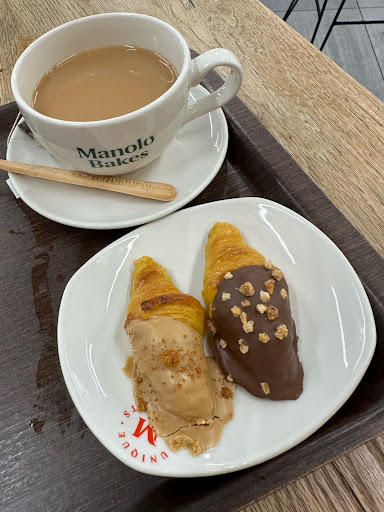 Atención pésima! Pongo una estrella porque no puede evaluarse con menos. Es una pena que debido a un servicio tan despreciable, se vea comprometida la calidad de un producto tan bueno. Hemos sido atendidos esta tarde domingo 2 octubre a las 16.30, por un señor cuyo comportamiento ha sido totalmente desdeñable. Hemos pedido una caja de 32 manolitos para llevar. Nos pregunta si nos los pone variados de lo que hay. Le decimos que sí, se pone a meterlos de forma brusca, rápida y sin colocación y por supuesto sin variedad. Cuando le he comentado que no me ponga tantos del croissant normal y que me ponga de pistacho, me dice que ya me ha puesto. Me quedo un poco sorprendida porque no he visto que llegara a la última caja de abajo a la derecha. Al salir, lo comprobamos y efectivamente no hay de pistacho. Hemos vuelto y con mala cara nos ha puesto solo los 2 que quedaban. Cuando antes habías 6. Obviamente se los ha puesto al señor que iba detrás de nosotros. Al decirle nos suelta que estaban reservados….. totalmente mentira. Me parece increíble y no entiendo cómo se puede tener a una persona de cara al público con tal actitud y que mienta sin consideración. He salido del establecimiento con un sentimiento de ser engañada y una terrible decepción....
