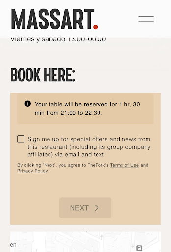 Frequent customer at massart, whether we order it or eat in. Normally have great experiences with food and staff but tonight my husband and I went for dinner here and had a negative experience with the service. We had booked a table for 21:00 and when I made the reservation online it states we have the table until 22:30. We arrive at 21:00 and are seated quickly and all the food arrives promptly. However, at 21:50, just as our dessert arrives, the waitstaff told us that the table had been booked for 22:00 so we only had 10 minutes left to finish. The couple next to us who was there before we arrived, and already had their salads, were not told the same information. We found this surprising as our reservation is until 22:30 and they should have told us this information before we ordered dessert, as we now feel pressured to rush our meal. We spoke to a more senior member of staff who told us not to rush and take our time, but at this point we didn’t feel that we wanted to stay any longer so we quickly finished and left. It’s a shame, as we eat here often and maybe it was an oversight, but there was no apology or offer of compensation for ruining the last part of our meal. It leaves a bitter taste in my mouth and we will have to think about whether we will...